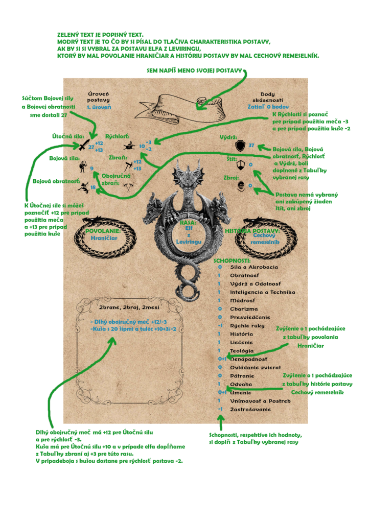 Na nasledujúcich screenshotoch je detailne vysvetlený postup vyplnenia tlačiva Charakteristika postavy. Tlačivo Charakteristika postavy má dve strany.